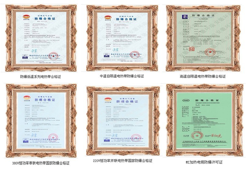 以上為安徽環瑞自控溫電熱帶、恒功率電熱帶、MI加熱電纜防爆合格證書,具體詳見安徽環瑞企業官網www.ahhuanrui.con榮譽中心