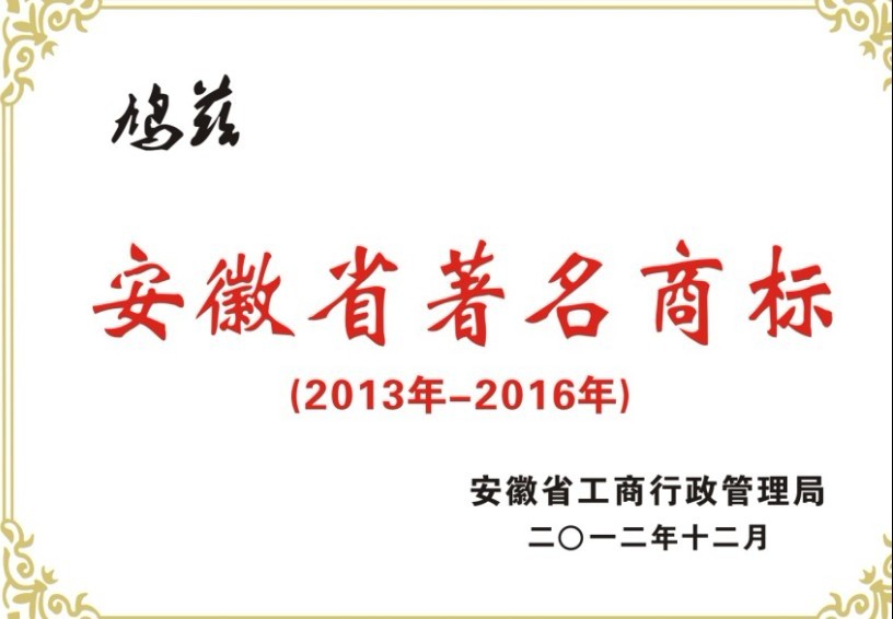 如今“鳩茲”迎來了一頂桂冠-安徽省著名商標。此項殊榮對于安徽環(huán)瑞品牌市場附加值、社會效益,以及文化影響力,被消費者認知,市場知名度、產(chǎn)品質(zhì)量等多指標的肯定。其中關于產(chǎn)品質(zhì)量政府規(guī)定只有產(chǎn)品質(zhì)量要達到雙優(yōu),公司質(zhì)量、環(huán)境、安全管理達到國際標準,通過國家權威機構認證認可才能評定符合著名商標。
