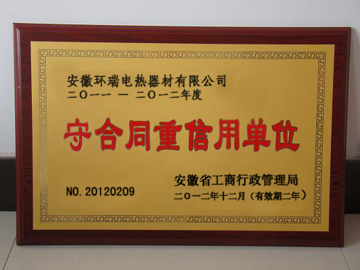 誠信是企業(yè)可持續(xù)發(fā)展的基石。十多年來,安徽環(huán)瑞電熱器材有限公司始終秉承“以人為本,以顧客為中心”的核心價值觀,恪守誠信經(jīng)營的理念,嚴格執(zhí)行《合同法》、《公司法》等法律法規(guī),不斷強化合同管理,完善合同管理制度,從根本上保證合同管理和履行的規(guī)范性。同時,大力開展創(chuàng)造“守合同重信用”企業(yè)活動,營造“守合同重信用”的良好氛圍,提高全體職工“守合同重信用”的自覺性和法制觀念,使企業(yè)合同管理不斷走向制度化、規(guī)范化、標準化。2011-2012年公司合同履行率100%。無任何違法、違約、違規(guī)及合同糾紛等不良行為,各合作單位對安徽環(huán)瑞的合同履行情況也都給予了高度評價。