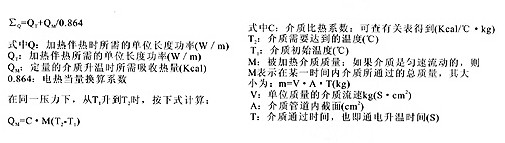 在工程設(shè)計(jì)中有時(shí)會(huì)碰到這樣的情況,要求產(chǎn)品既能伴熱保溫。又能將介質(zhì)開始是靜止的或流速較慢,流量較少,且所需升溫的度數(shù)不高時(shí),有時(shí)用電伴熱產(chǎn)品也可以滿足設(shè)計(jì)要求。此時(shí),該電伴熱產(chǎn)品的設(shè)計(jì)功率所產(chǎn)生的熱量按下式計(jì)算:
