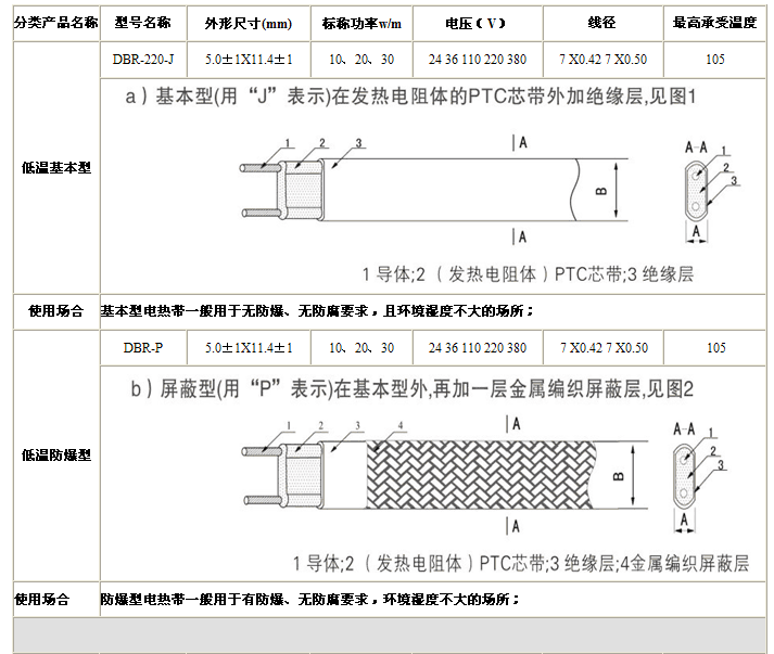 DBR-J 基本型電熱帶一般用于無防爆、無防腐要求,且環(huán)境濕度不大的場(chǎng)所;