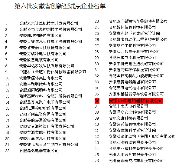 安徽環瑞榮獲第六批安徽省創新型試點企業